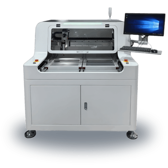 本設(shè)備主要利用銑刀高速運(yùn)轉(zhuǎn)將多連片式PCB按預(yù)先編程路徑分割開來,取代人工折斷或V-CUT或PUSH的切割瑕疵,有效的降低分板時(shí)產(chǎn)生的應(yīng)力,并且分板切割面光滑無毛刺